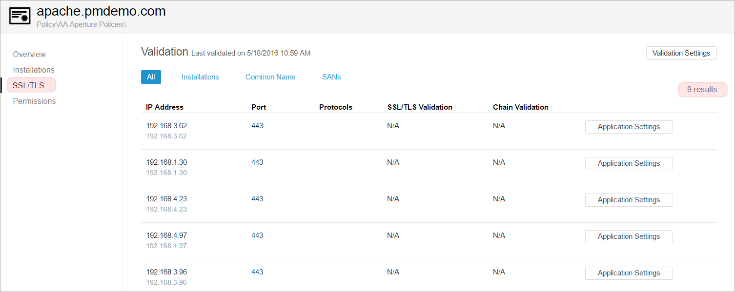 Click Installations in the sidebar to see a list of applications and devices on which the certificate is installed.