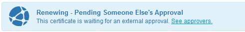 In the Renewing - Pending Someone Else's Approval banner, click See approvers.