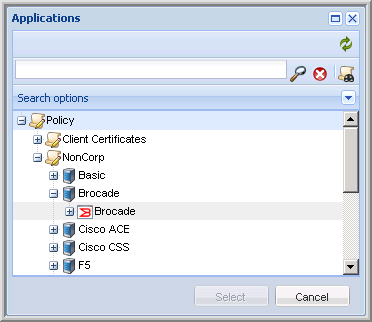 You must have either Write or both Associate and View permissions to the Application object to select it in the Applications Selector dialog.