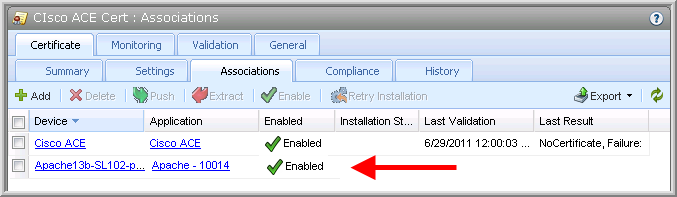 In the Policy tree, select the Certificate object you want to associate with the application, and then click the Associations tab.