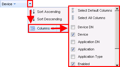 Determines the columns that display on the Certificate Associations tab. NOTE In Policy Tree, the column settings are stored in the administrator’s User object. Therefore, Policy Tree always reflects the user’s most recent column settings, even if the administrator logs in from another workstation. In Policy Tree, the column settings are reset every time you log in. To access the Column menu in Policy Tree Click the drop-down menu icon for a given column. Click Columns. |
