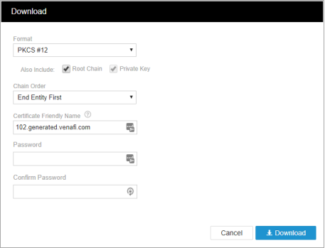 TIP If either the 'Root Chain' or 'Private Key' options are available on any of the keystore types, then the corresponding options will automatically be selected in the Download modal.