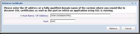 Enter the hostname or IP address and port of the server from which you want to retrieve the certificate.