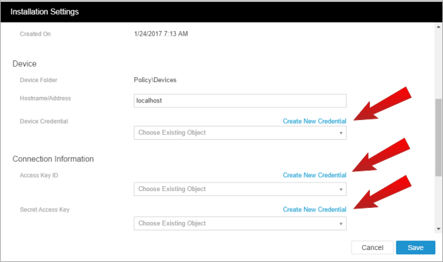 The following image shows an example of the Installation Settings window for an Amazon installation. The fields displayed vary depending on the installation type.