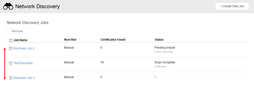 You can create Network Discovery jobs that scan specific IP addresses, CIDRs, hostnames, and ports to locate certificates. Network discovery jobs can be run on demand or according to a customized schedule (see Scheduling a job).