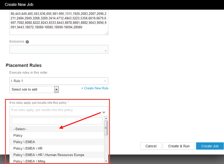 • Placement Rules: To create a placement rule, click + Create New Rule.