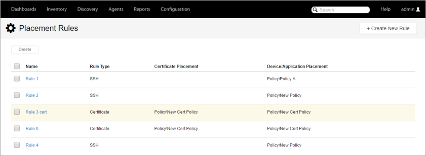 From the Certificate Manager - Self-Hosted menu bar, click Configuration > Placement Rules.