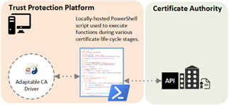 By using PowerShell, scripts that are to be used by the Adaptable CA driver can be developed and tested independently of Trust Protection Foundation, making integration simpler.