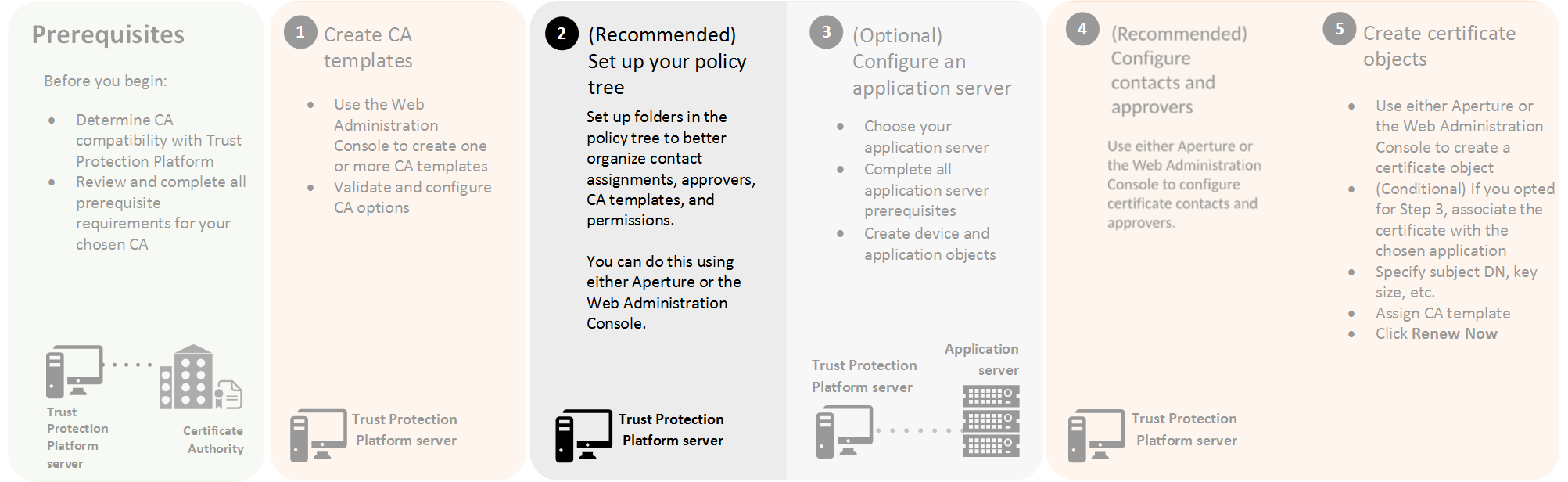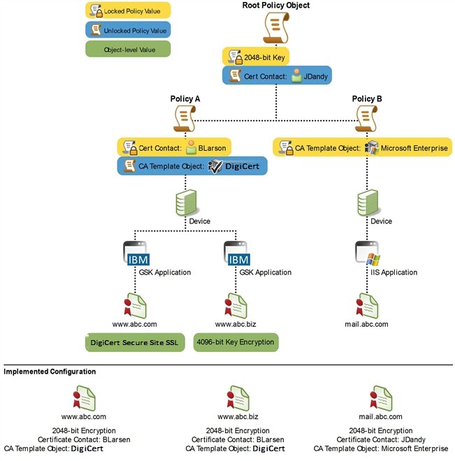 When managing CA templates, each folder enables you to set policy that applies for each object type contained below it. For example, if several certificates are contained within a folder, one or more of the policy attributes for those certificate objects can be defined on the folder. Consequently, folders can be used to standardize object configuration parameters and enforce security requirements throughout your encryption environment.