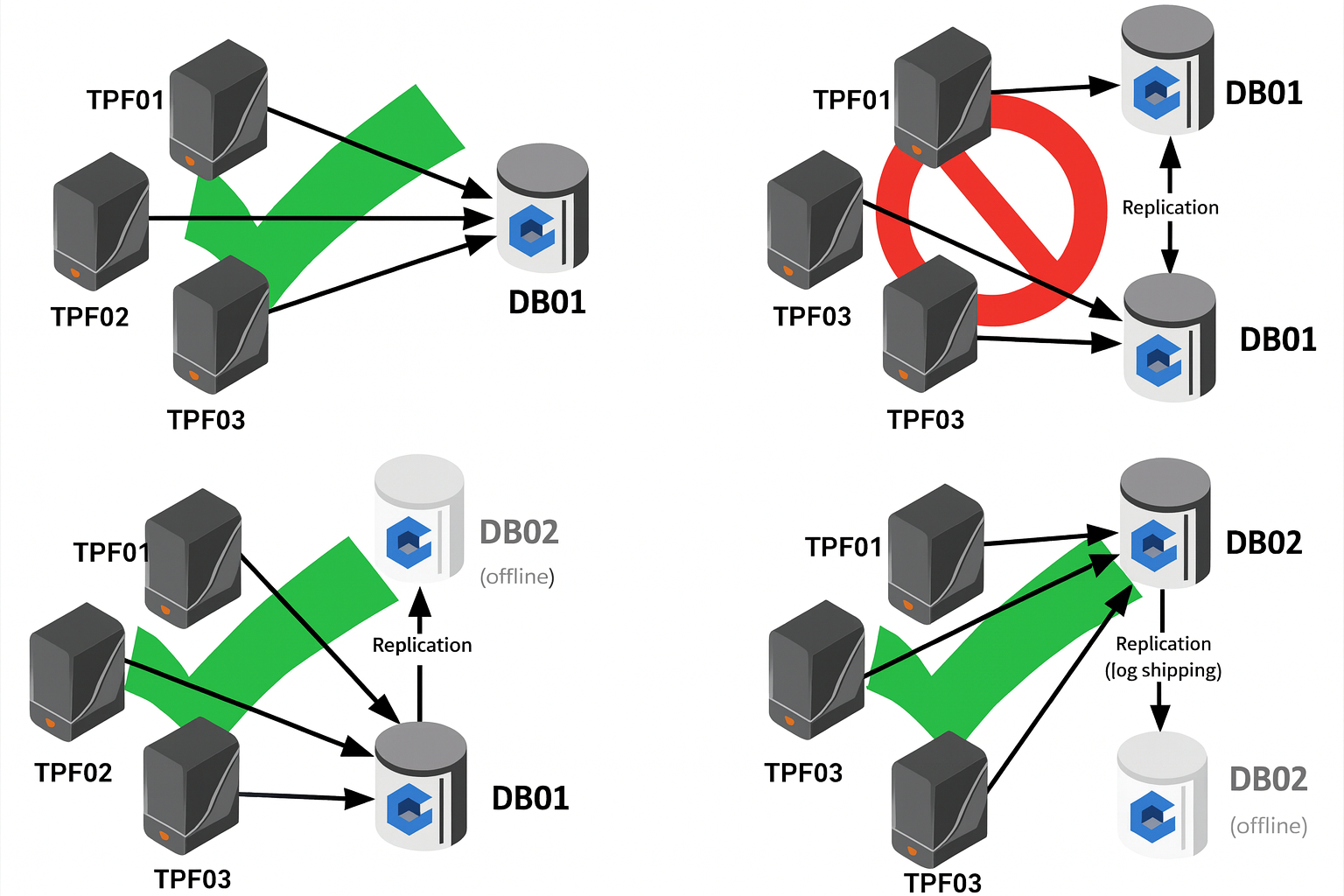 Use of a secondary database for disaster recovery (for example, log-shipping/replication) is allowed when all Trust Protection Foundation instances use a single active database.