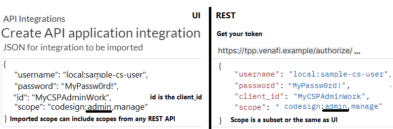 Integration: In the UI, use an API integration to import a set of scopes that your application will use.
