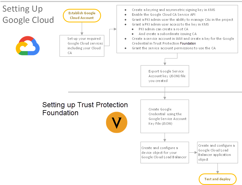 - Set up the Trust Protection Foundation side to connect securely to the Google Cloud CA for requesting and provisioning certificates.