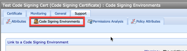 A certificate can only be linked to an existing Certificate & Key environment type. If the environment you want to link the certificate to already exists, you can proceed to Link code signing certificate to Code Sign Manager - Self-Hosted environment.