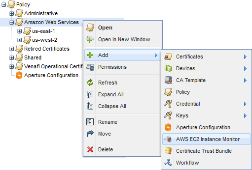 Right-click the policy folder and select Add > AWS EC2 Instance Monitor.