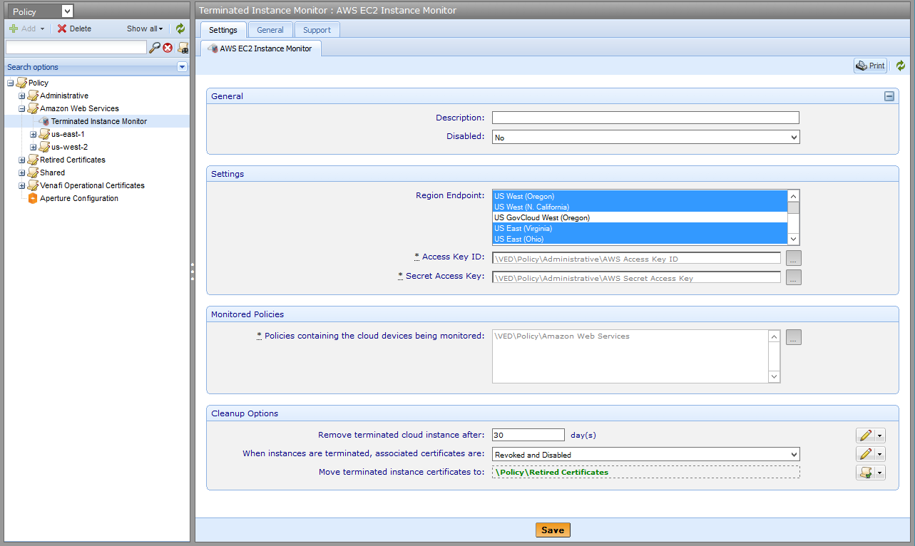 Select one or more policy folders where this monitor should look for devices and certificates related to EC2 instances that have been terminated.